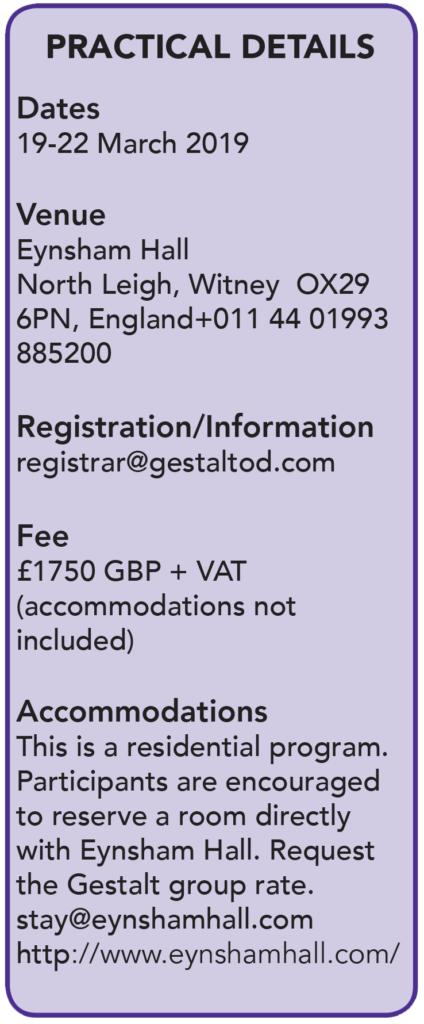 Join this highly experiential, professional and personal learning journey with three internationally recognized Gestalt teachers and practitioners Sheena Cartwright, John Nkum and Mary Ann Rainey. This introductory course builds on seminal research and theories of groups, organisations and social change of Gestalt social psychologist Kurt Lewin, principles and strategies of working with individuals and small social systems from Gestalt therapist Fritz Perls and his colleagues, and perspectives of Edwin Nevis and other founders of the Cleveland approach to Gestalt practice in organisations.